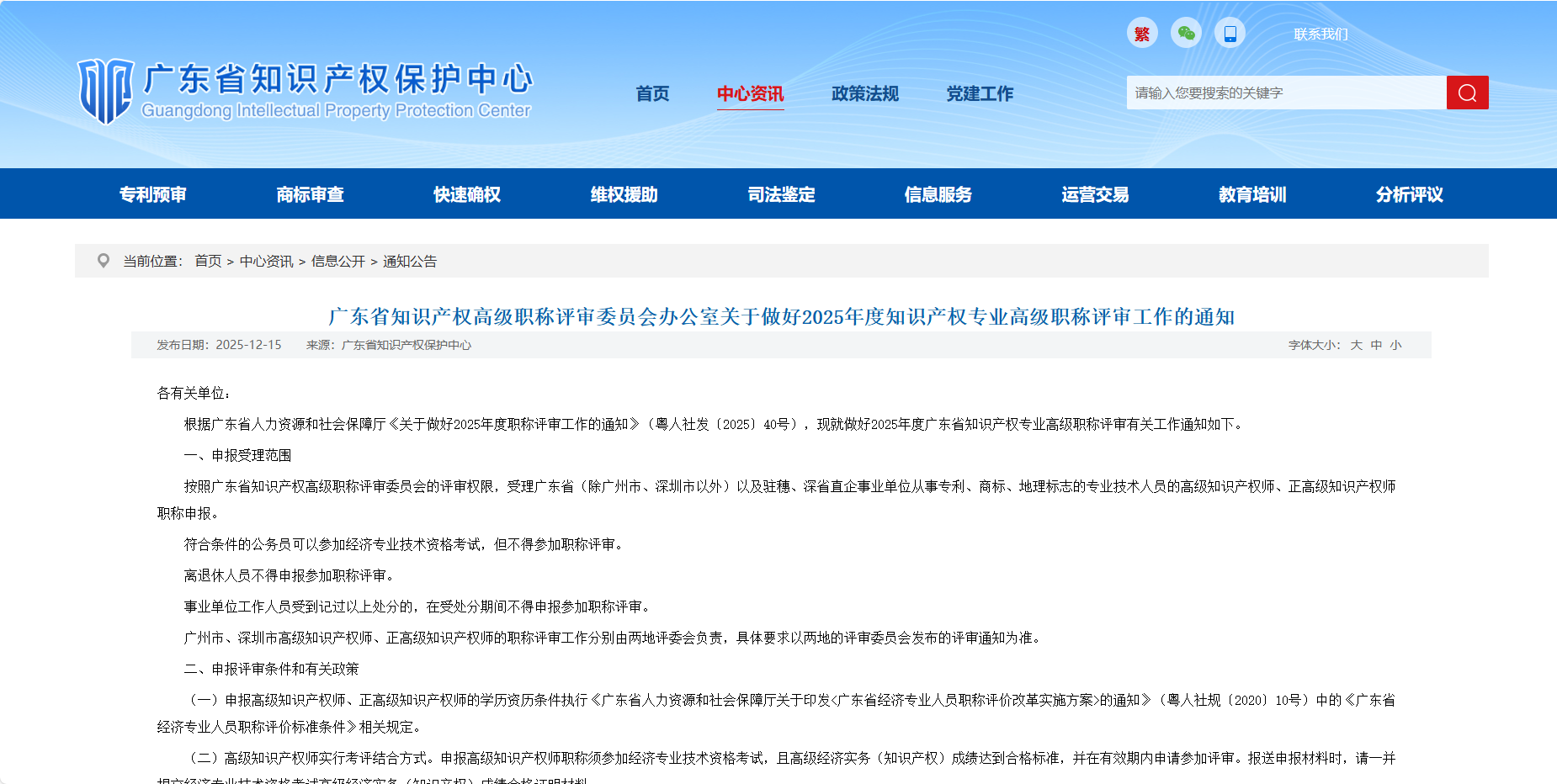 广东省知识产权高级职称评审委员会办公室关于做好2025年度知识产权专业高级职称评审工作的通知