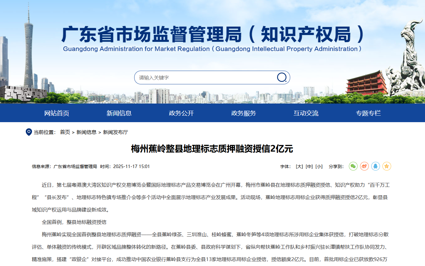梅州蕉岭整县地理标志质押融资授信2亿元