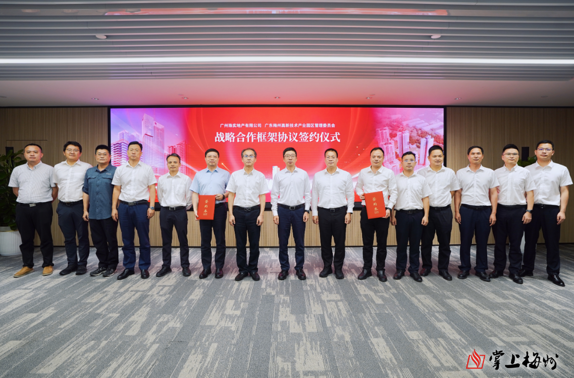 5月21日下午,梅州高新区(广梅产业园)珠江花城人才公寓项目在广州举行战略合作框架座谈和签约仪式。珠江实业集团党委书记、董事长、总经理郑洪伟,梅州市政府党组成员、广州对口帮扶协作梅州指挥部指挥长、梅州高新区党工委书记张文杰等出席座谈并见证签约仪式。